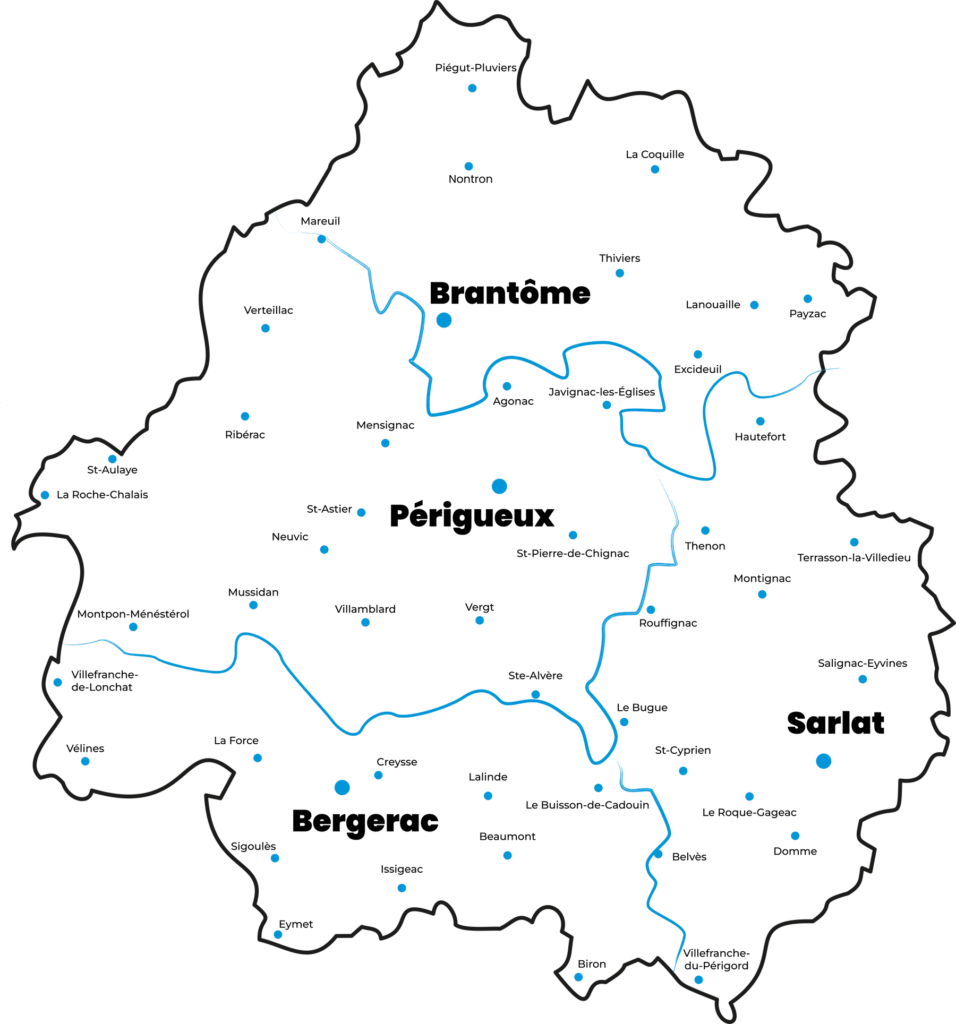 Nous intervenons sur le secteur de la Dordogne avec les localités suivantes :